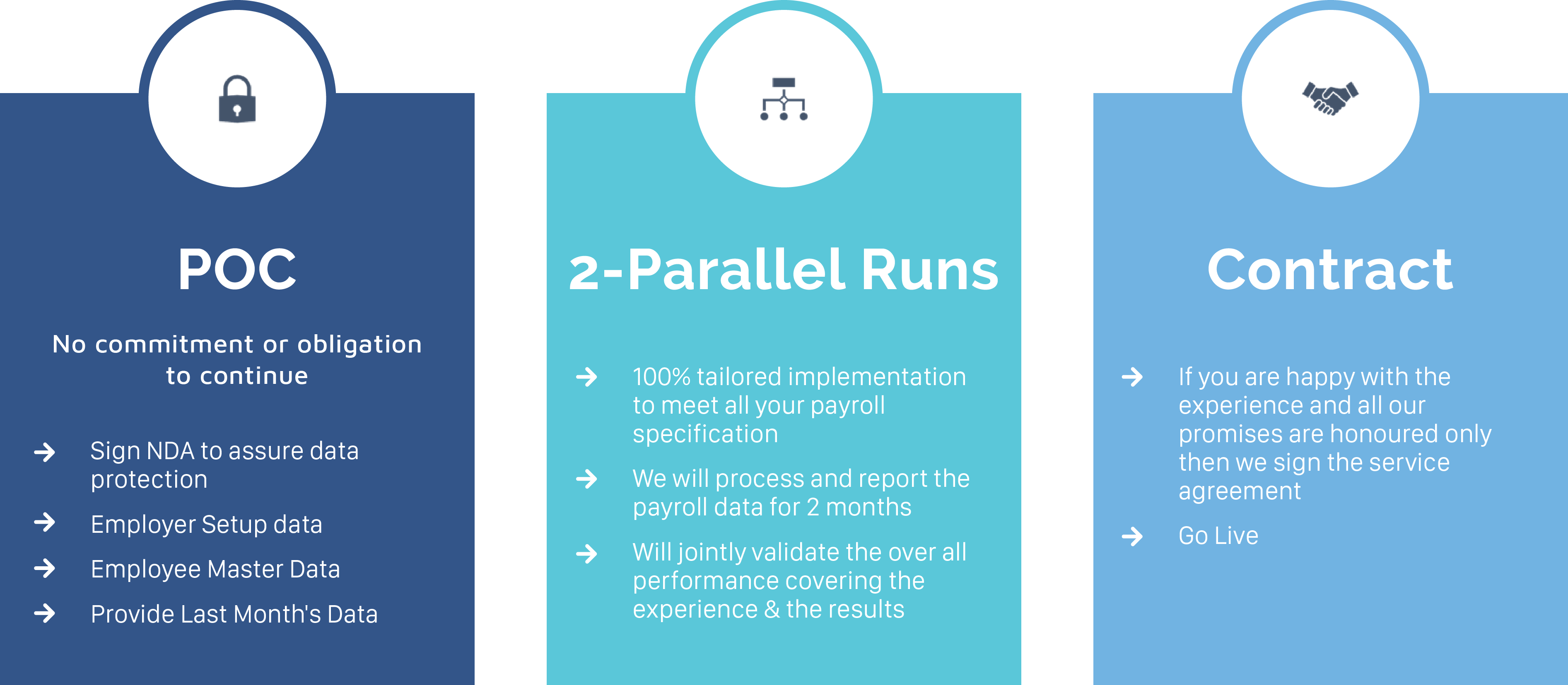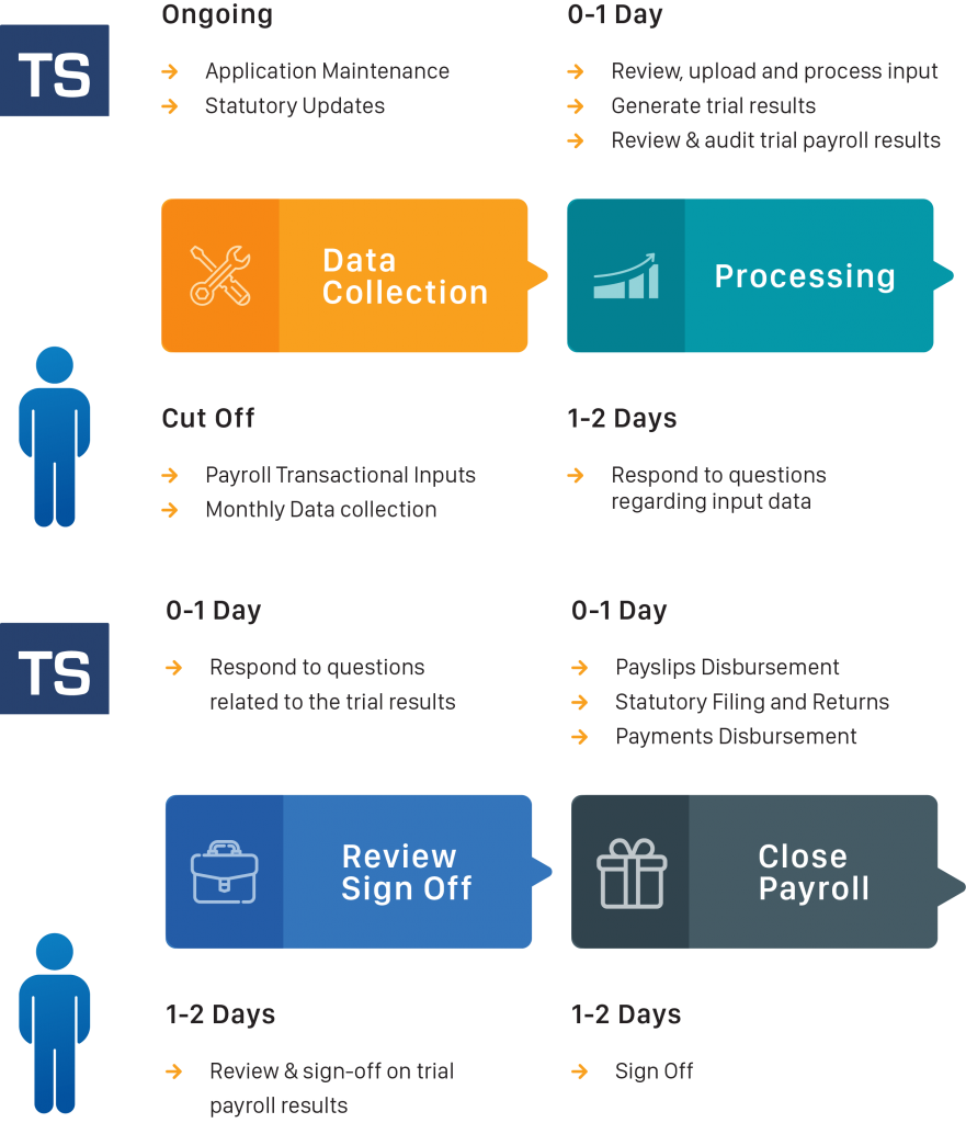 - We take care of the payroll management where the client provides minimal monthly input and payroll changes; onboarding, offboarding, one-time payments, non-periodic deductions, and allowances.