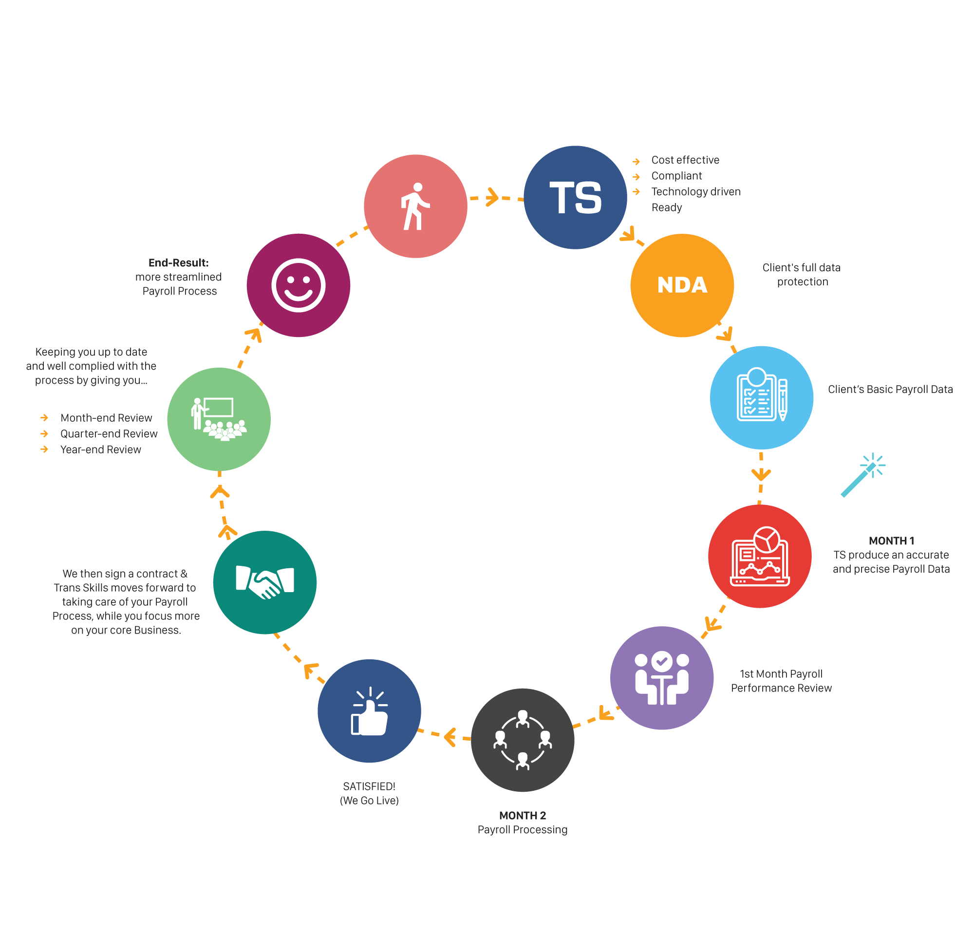 With Trans Skills expertise in payroll service delivered by a dedicated support team, you are guaranteed to prevent such problems from occurring. We offer topnotch payroll services where clients have complete visibility, as we provide real-time accurate, transparent and efficient centralized reporting along with smooth and painless implementation for wherever your employees may be situated around the globe.